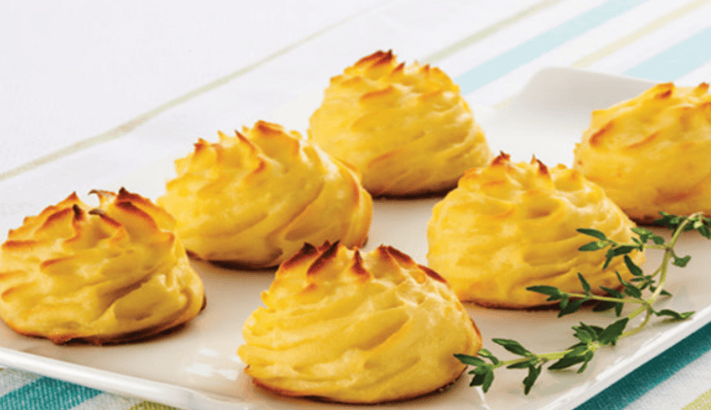 7. Moldar as Batatas Duchesse com a ajuda de um saco de confeitar.