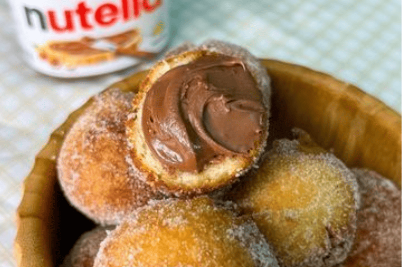 3. Retire os bolinhos de NUTELLA® do freezer e passe pela a massa, escorra o excesso e frite em óleo quente(180°C) até que os bolinhos de Chuva fiquem dourados.