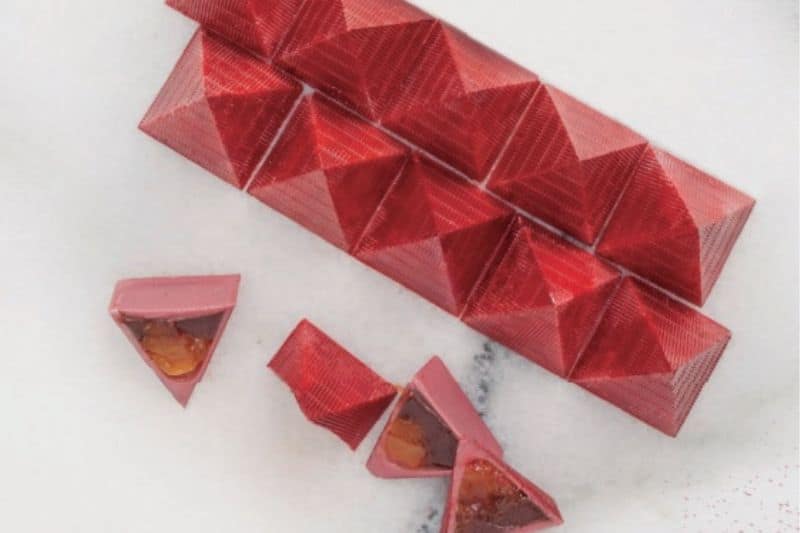 Faça a pré-cristalização do chocolate RUBY Callebaut RB1 e molde as casquinhas de bombom.