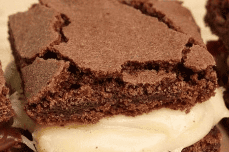 1- Após assar o brownie, aplique 40g do recheio sobre ele.