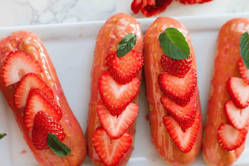 10. Completar com o creme e finalizar com a parte de cima do éclair.