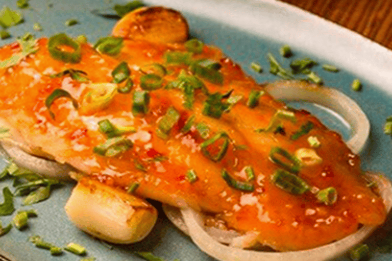 7. Faltando 5 minutos para terminar de assar, retire o peixe do forno e pincele um pouco de Molho Thai Sweet Chili Custom Culinary Zafrán.