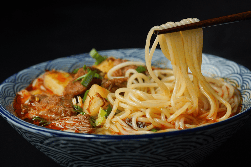5- Monte as tigelas com caldo, massa, nirá e moyashi. Em seguida, coloque o ovo cortado ao meio e a panceta já fatiada.
