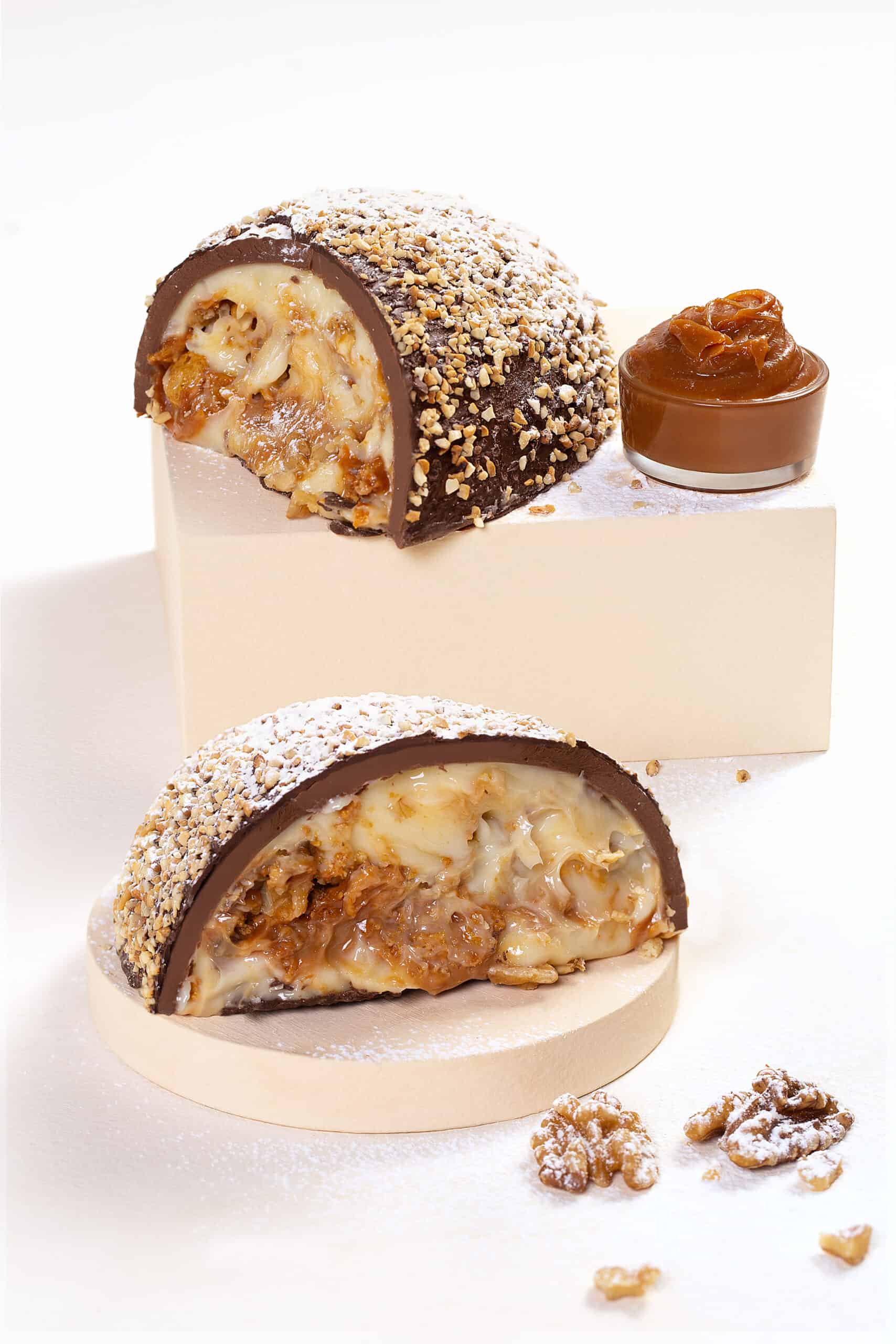 4. Recheie a casca de ovo de Páscoa com o recheio de nozes e cubra de Doce de Leite