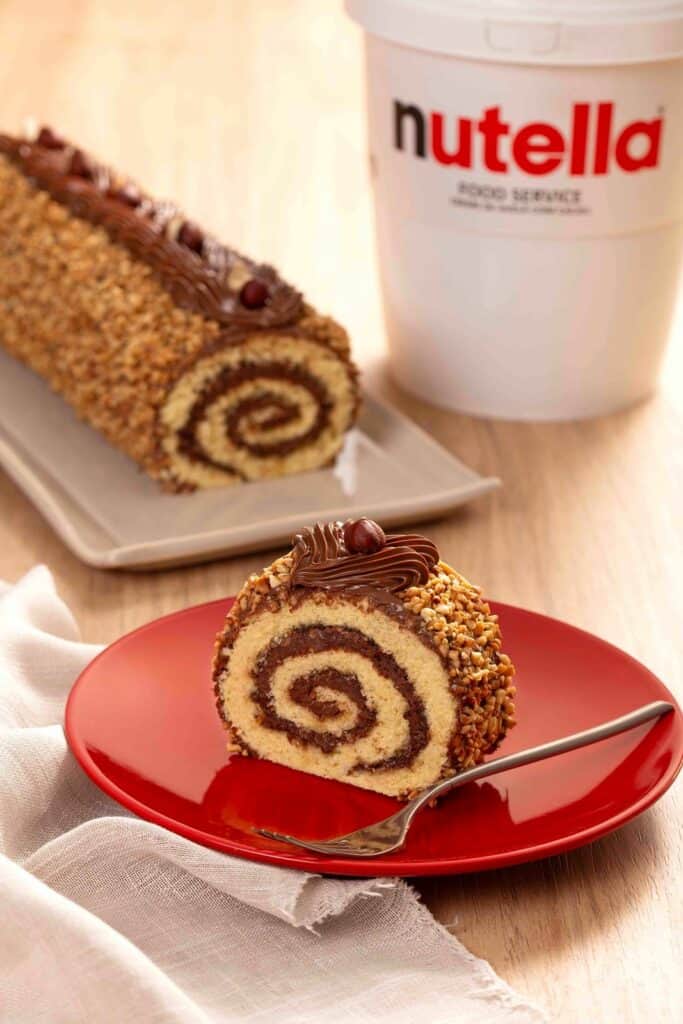 Ainda morno, passar uma camada de Nutella em toda extensão do rocambole e enrolar, deixando esfriar totalmente. Decore e corte as fatias.