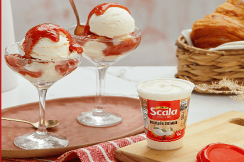 2. Em outro recipiente bata o leite condensado junto ao Cream Cheese Scala por aproximadamente 10 segundos ou até obter uma consistência leve e aerada.