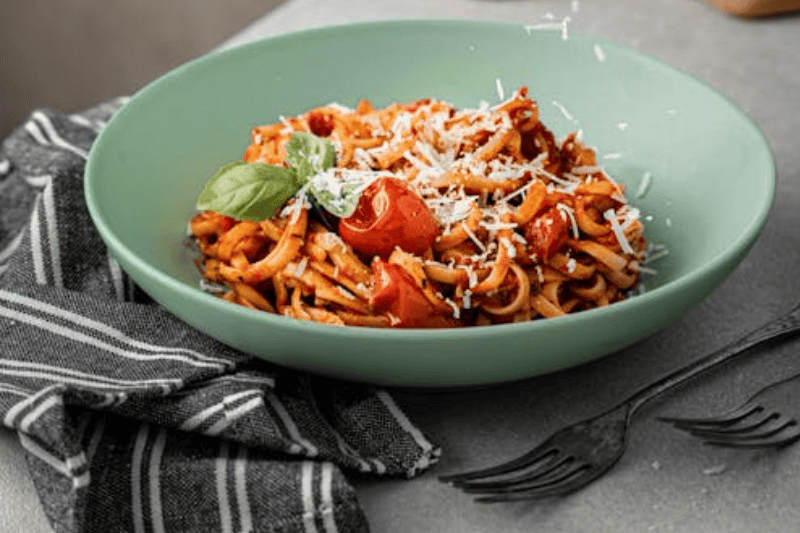 7- junte a massa ao molho de tomates e corrigir o tempero. Desligue o fogo e acrescente mais manjericão fresco. Sirva imediatamente.