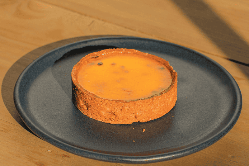 8. Espalhe o creme sobre a massa pré-assada e, por cima do creme, espalhe 1 xícara e meia de chá da farofa reservada.